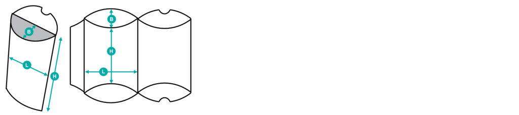 Kissenpackung (KP): L x B x H